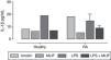 For comparison among study groups (healthy subjects vs patients with RA), real-time PCR calibration curves for IL-1β and GAPDH genes were produced from purified specific amplicons. In all groups we obtained normalized expression ratio (ner) of each condition (unstimulated, LPS, MLIF and LPS+MLIF) employing the formula: