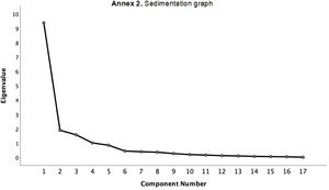 Structural validityThe internal structure of the scale was analyzed through exploratory factor analysis (EFA), including all variables with a correlation coefficient greater than 0.3 and inter-item correlations no greater than 0.65. A principal component analysis (PCA) was used to explore the relationships between the observed variables (items) and the latent variables (factors) and to identify the structure of the factors. Two methods were used to assess sample adequacy: the Kaiser–Meyer–Olkin (KMO) criterion and Bartlett's test of sphericity. As a rule of interpretation of the KMO indices, values greater than 0.6–0.7 were considered acceptable. Once the assumptions were checked, data extraction was conducted using a PCA with the orthogonal rotation Varimax method. Only those factors with an eigenvalue>1 were considered for the analysis.27