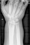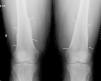 The patient, a 45-year-old male, was referred to the rheumatology clinic due to diffuse joint pain on the wrists and knees. The patient was diagnosed with liver cirrhosis and severe hepatopulmonary syndrome. Physical examination showed swelling of the knees and wrists (arthritis) and clubbing. The X-rays requested showed periosteal thickening observed continuously, in a diaphysometaphysiary location of the radius and ulna in both forearms, and predominantly in distal femurs and both knees, compatible with nonaggressive periosteal reaction. Fig. 1 shows periosteal thickening affecting both femurs on the concave bone edge and respecting the epiphysis, and equal involvement of the radius and ulna on the right wrist, in Fig. 2.