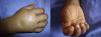 Remitting seronegative symmetric synovitis with pitting edema (RS3PE) was diagnosed, starting treatment with prednisone 15mg daily for 6 weeks and later reduction, being discharged after 3 days with evident improvement. After 6 months she came to the clinic showing important improvement and no hand edema or synovitis (Fig. 2).