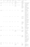 | Estudio | Edad (años) | Sexo | Enfermedad de base | AP/AF de psoriasis | Tratamientos previos | Esquema de tratamiento con CZP | Tipo de psoriasis | Tiempo hasta aparición de psoriasis inducida | Evolución |