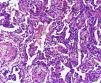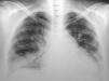 Se inició tratamiento con tazonam (4,5g/6h) y vancomicina (1g cada 12h). El día 13 de la internación aumentó su disnea de reposo que fue coincidente con Rx de tórax, que demostró progresión de los infiltrados pulmonares y signos de hipertensión venocapilar. Se indicó primero oxigenoterapia y luego ventilación asistida. Después de cinco días de plan antibiótico, evolucionó con controles febriles (37,5–38°C), por lo cual se suspendió tazonam y se inició imipenem (2g/día). Se agregó hidrocortisona (300mg/día) y anfotericina B (20mg/día). Disminuyó el ritmo de diuresis, por lo que se indicó fursemida (60mg) en infusión continua. Las muestras de urocultivo, hemocultivos seriados, líquido pericárdico (pericardiectomía) al igual que la coloracion de Ziehl-Nielsen fueron negativas. Durante el día 17 de internación, una ecocardiografía Doppler mostró fracción de eyección del 60%, derrame pericárdico moderado, colapso parcial de la aurícula derecha, flujo mitral con alteración de la relajación y leve insuficiencia mitral. La PSAP se estimó en 63mm. El día 20 de internación la paciente presentó taquipnea, con mala mecánica respiratoria y desaturación. Se conectó a asistencia mecánica respiratoria, modo controlado por volumen. Se interconsultó con neumonología y se realizó biopsia pulmonar. El día 23 de internación evolucionó a hipotensión sostenida sin respuesta a infusión de líquidos. Presentó asistolia, iniciándose maniobras de resucitación cardiopulmonar con infusión de adrenalina sin éxito, constatándose óbito el día 11 de abril de 2009.