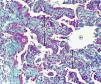 No se reconocieron cambios inflamatorios granulomatosos, infiltrados específicos, signos de lesiones hemorrágicas o signos de colonización por P. jiroveci o formas fúngicas. No hay signos de lesiones neoplásicas.