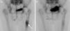 We report the case of an 83 year old woman with a history of postmenopausal osteoporosis with weekly bisphosphonate treatment and daily intake of calcium and vitamin D and a hip fracture right at 64, treated with a cemented prosthesis. She attended the clinic due to mechanical right hip pain with claudication, progressing in months. On examination we found limitation and pain on right hip rotation. We performed a hip X-ray (Fig. 1) and, suspecting aseptic displacement of the prosthesis, bone scintigraphy was performed in 3 phases showing uptake in the distal third (Fig. 2a), confirming the diagnosis. We started treatment with strontium ranelate plus calcium and vitamin D. After 2 months, the patient improved significantly and her claudication disappeared. At 6 months, the bone scan was repeated, which showed a reduction to close to normal of the increased uptake seen at baseline (Fig. 2b).