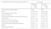 | Urinary tract infection | 19 (22.1) | 12 (9.5) |