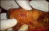 Thoracic and abdominal computed tomography revealed bilateral pleural effusion, pneumoperitoneum, peritoneal membrane thickening, free fluid in the peritoneal cavity and enlarged lymph nodes. Therefore, he was scheduled for surgery, and was found to have numerous intestinal perforations (Fig. 1). It was necessary to perform subtotal colectomy and ileostomy. Treatment with meprednisone at 40mg/day resulted in a favorable clinical course. The dose was reduced to 8mg/day, accompanied by azathioprine at 100mg/day, which resulted in 1 year without relapses. A video recording of a follow-up colonoscopy showed active lesions, and he began to receive 40mg of subcutaneous adalimumab every 15 days,1–3 which achieved clinical and histopathological remission after 4 months of treatment.4