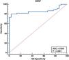 The mean level of BDNF of patients with FM is 1.09 (±0.17), in others without FM 1.81 (±1.10) without a statistically significant p value (p=0.013) (Fig. 1). There was no significant correlation between cognitive function and duration of disease, DAS28, depression score by PHQ-9 test or BDNF level (p=0.257, p=0.645, p=0.388, p=0.546, respectively) (Table 3). There was no statistically significant correlation between the disease duration and BDNF level (p=0.837) (Table 4). There was a positive correlation between depression and DAS score with statistically significant p value (p=0.001) and a negative correlation between depression and duration of disease with statistically significant (p=0.034). There was a non-significant correlation between depression and BDNF level (p=0.207) (Fig. 1). There was cut-off value of BDNF was ≤2ng/ml, with sensitivity and specificity of BDNF for diagnosis of cognitive dysfunction in RA patients were 80%, and 96.67 respectively. The area under the curve (AUC) was 0.861, the positive predictive value was 98 and the negative predictive value was 70.7 (Fig. 2).