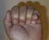The lesion was diagnosed to be a giant cell tumor of the tendon sheath of the fifth finger and was removed in its entirety (Fig. 4). Two years later the lesion recurred (Fig. 5) and the patient underwent surgery. Currently, after two years, there have been no new recurrences, the mobility of the distal interphalangeal joint is limited, although the function of the patient's hand is normal.
