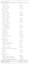 Análisis estadísticoAnálisis descriptivo, usando frecuencias y porcentajes para las variables cualitativas y medias y desviación estándar para variables cuantitativas, con el paquete estadístico SPSS v.10 (Chicago, Illinois, EE.UU.).