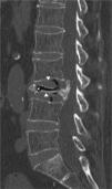 IVVF, although not pathognomonic, is the most characteristic radiographic sign of this entity and often suggests the diagnsis.3,4 This sign reflects the presence of gas within the bone (mainly nitrogen) and in adjacent tissues. IVVF can be seen in radiographs, a linear or crescent-shaped radiolucent image usually located adjacent to the superior endplate, which appears or is enhanced by the extension, and decrease or even disappears with flexion of the spine. Sometimes it can be detected by CT or MRI because of its greater sensitivity.